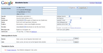 Die Google Suche zeigt auf Wunsch im Cache gespeicherte, ältere Versionen einer Webseite an oder übersetzt eine gefundene Internetseite mit einem Klick in die Sprache des Nutzers. Über die erweiterte Suche schränkt man seine Recherche nach Kriterien wie Sprache und Dateiformat ein oder sucht gezielt nach bestimmten Links. Außerdem begrenzt man bei Bedarf die Suche auf eine bestimmte Wortgruppe oder schließt Wörter aus. Mit speziellen Befehlen kann man seine Suche sehr exakt definieren.